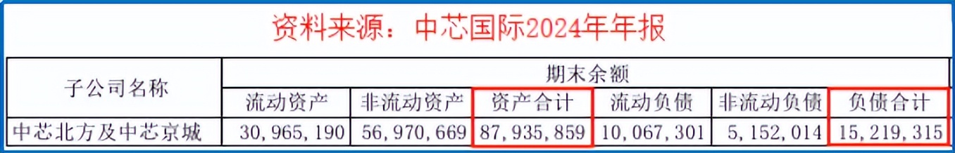 截至2024年底,中芯北方及中芯京城合计资产负债比仅为17.31%。
