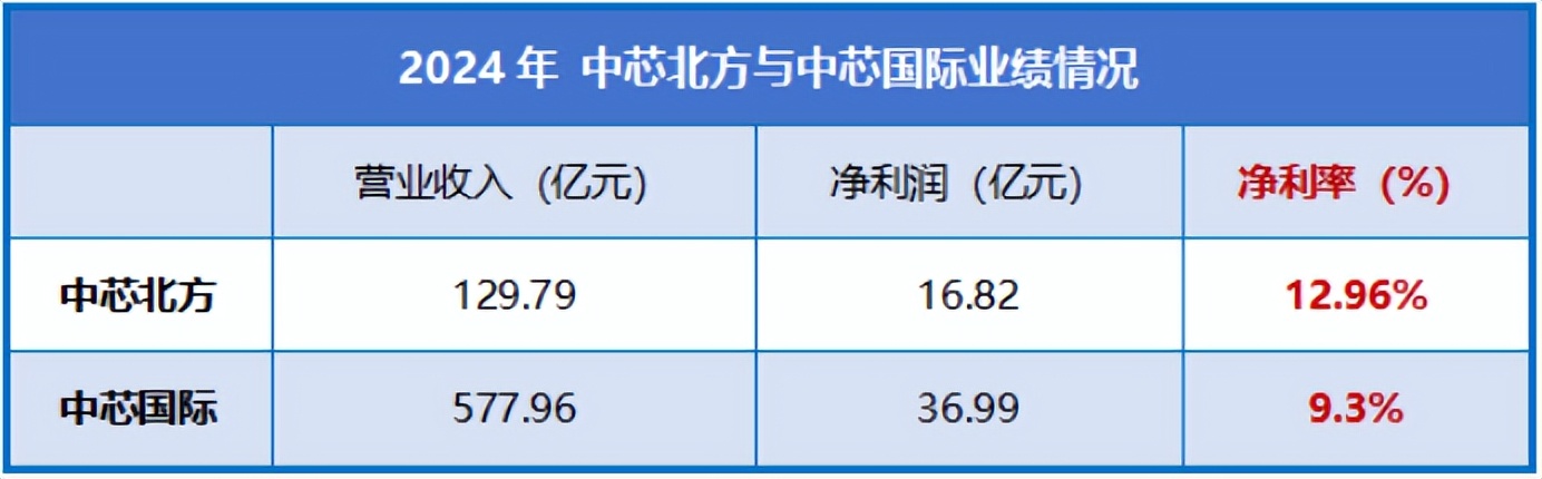 具体来看,2024年,中芯北方实现营业收入129.79亿,净利润16.82亿,对应净利率12.96%。